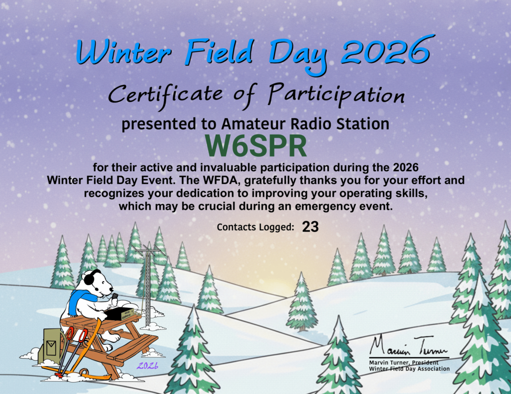 On Saturday, January 24, SPARC returned to Eddie Park for the 2026 edition of Winter Field Day. Club members had a chance to deploy antennas they had not used before and test new field operation set-ups. While most of the country suffered through bitter cold and adverse conditions, we enjoyed the lovely setting of Eddie Park and introduced ham radio to several curious passersby. We operated from approximately 10:30 a.m. to 2:45 p.m.